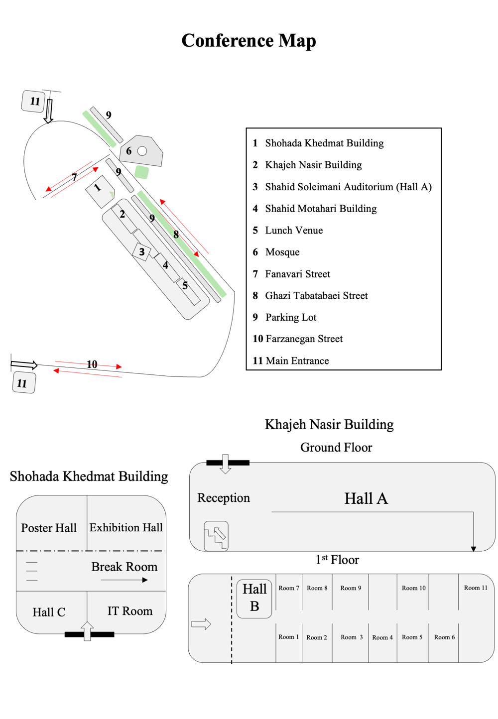 به اطلاع شرکت‌کنندگان گرامی می‌رسد که نقشه‌ دانشگاه و همچنین نقشه تفصیلی ساختمان محل برگزاری سی و دومین کنفرانس ملی و دهمین کنفرانس بین‌المللی مهندسی زیست‌پزشکی ایران تهیه و آماده انتشار است. هدف از ارائه این نقشه، تسهیل دسترسی شرکت‌کنندگان به فضاهای مختلف دانشگاه، سالن‌های ارائه، کارگاه‌ها و بخش‌های پشتیبانی است تا برنامه‌ریزی روزهای کنفرانس با آسودگی بیشتری انجام شود. در تصویر زیر، نمای کلی نقشه قرار داده شده‌است.