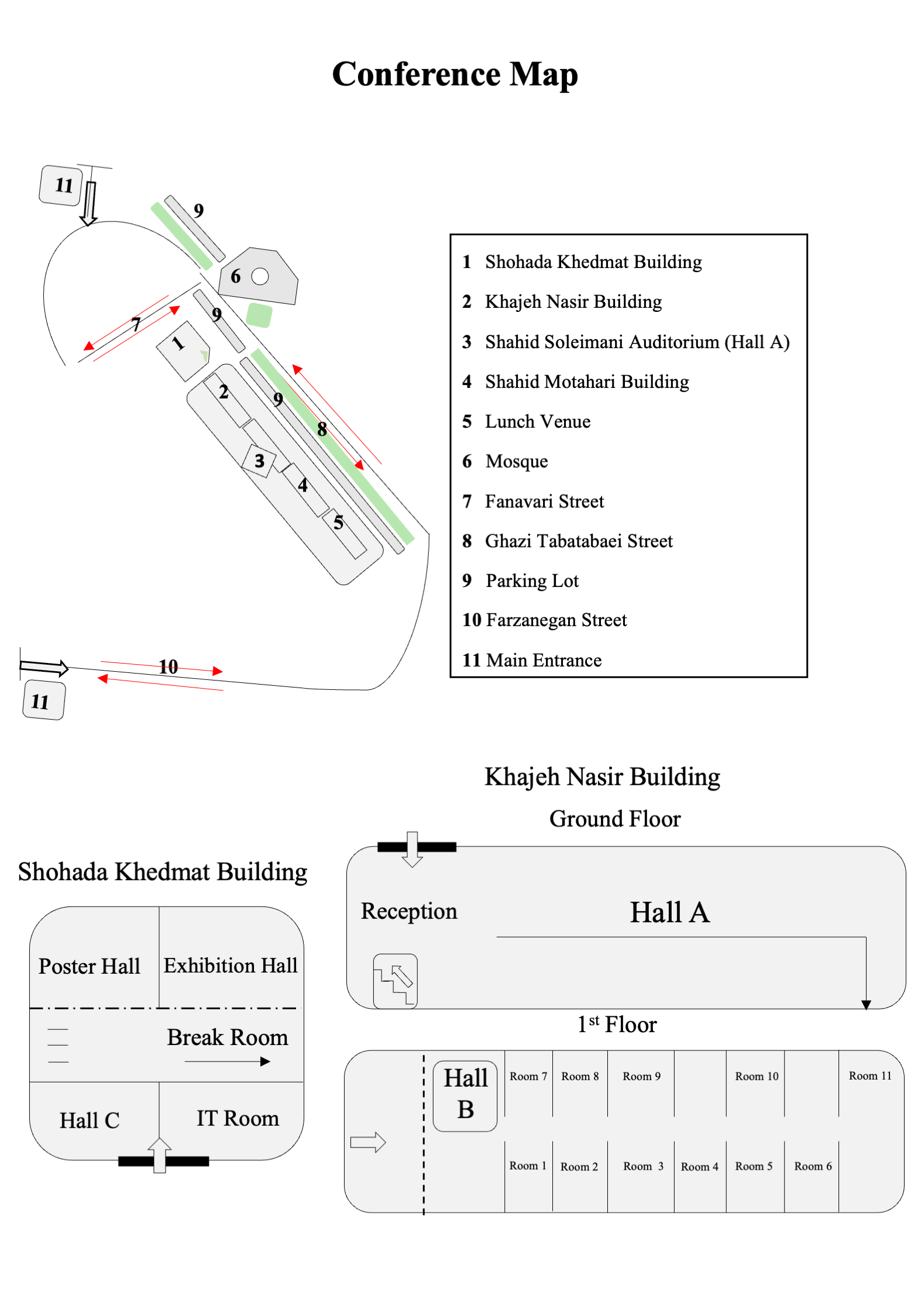به اطلاع شرکتکنندگان گرامی میرسد که نقشه دانشگاه و همچنین نقشه تفصیلی ساختمان محل برگزاری سی و دومین کنفرانس ملی و دهمین کنفرانس بینالمللی مهندسی زیستپزشکی ایران تهیه و آماده انتشار است. هدف از ارائه این نقشه، تسهیل دسترسی شرکتکنندگان به فضاهای مختلف دانشگاه، سالنهای ارائه، کارگاهها و بخشهای پشتیبانی است تا برنامهریزی روزهای کنفرانس با آسودگی بیشتری انجام شود. در تصویر زیر، نمای کلی نقشه قرار داده شدهاست.