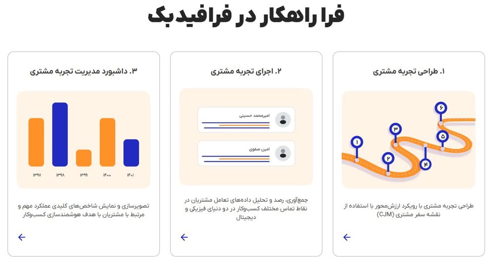 سامانه نظرسنجی فرافیدبک محصول شرکت نوآوان دانش و فناوری اطلاعات فرین ایده در سال 1393 با نگاهی علمی به مسائل حوزه آمار، نظر سنجی و مدیریت نظرات مخاطب و تاثیر آن بر روی روند عملکرد سازمان خلق شد. این پلتفرم با برخورداری از گزارشهای متنوع موجود و امکان افزودن گزارشهای خاص دیده نشده در نرم افزار، ابزاری قدرتمند در دست مدیران ارشد و میانی خواهد بود. سامانه نظرسنجی فرافیدبک با توجه به بررسی نیاز مخاطب این نرم افزار را بصورت آنلاین (تحت وب) و با داشبوردی بسیار کاربر پسند برای مدیران سازمان و کاربران طراحی کردهاند تا آنها به راحتی بتوانند از این پلتفرم استفاده نمایند.